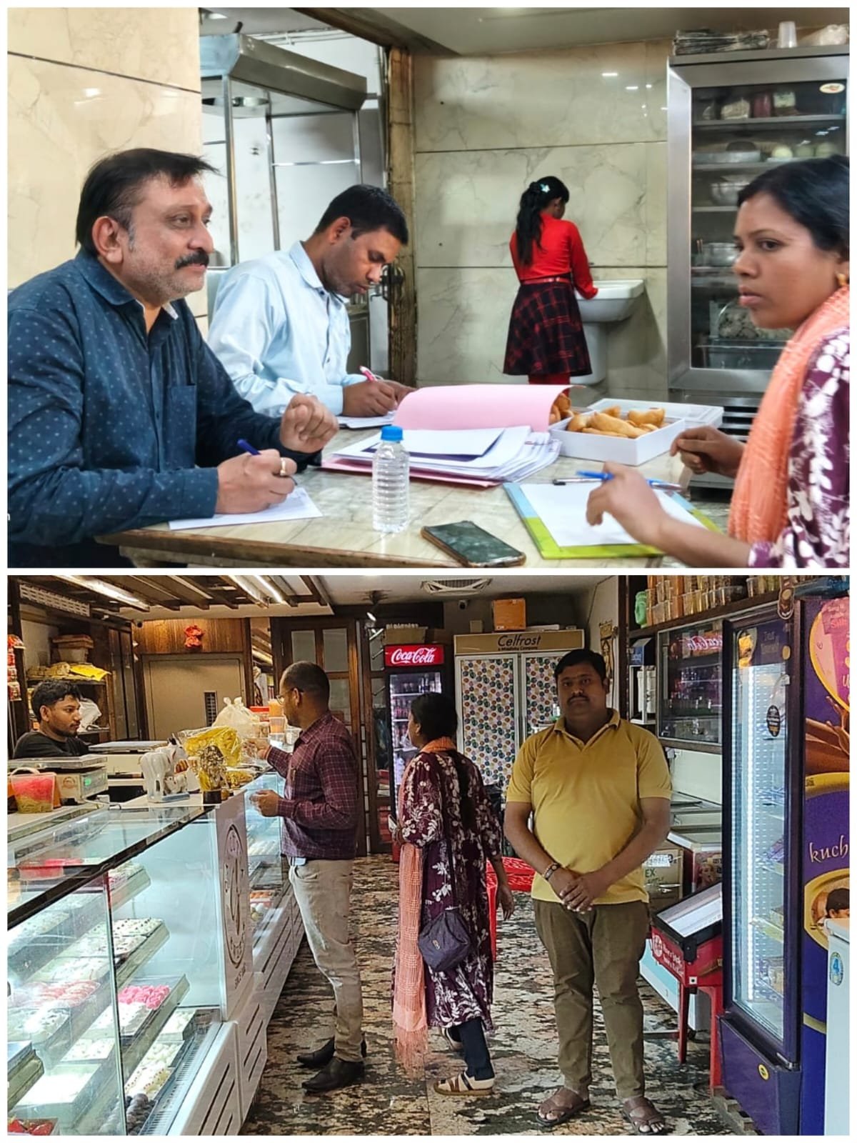 टीम द्वारा भाटापारा के खेमजी होटल, कलकत्ता स्वीट्स व न्यू काशीराम सुपर मार्केट भाटापारा का निरीक्षण किया गया एवं मिठाई का नमूना लिया।निरीक्षण के दौरान खाद्य कारोबारकर्ताओं को खाद्य परिसरों एवं खाद्य पदार्थों के निर्मित किये जाने वाले जगहों की सफाई व्यवस्था ठीक रखने, गुणवत्तायुक्त खाद्य पदार्थों का उपयोग मिठाईयों एवं नमकीन बनाने में प्रयोग करने, किसी भी निर्मित मिठाईयों या खाद्य पदार्थों में अखाद्य रंगों का (गणेश, गाय छाप रंग) का उपयोग नहीं करने के निर्देश दिये गये। ग्राहकों को त्यौहारी सीजन में साफ सुथरे व कम घटक रंगों की मिठाईयों का प्रयोग करने तथा साफ-सफाई युक्त खाद्य परीसरों से ही खाद्य पदार्थों का अवसान तिथि, खाद्य लाईसेंस / पंजीयन नंबर देख कर ही पैक्ड खाद्य पदार्थों का क्रय करने कहा गया।