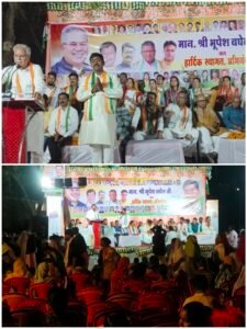 हालाकि भूपेश बघेल की गैर मौजूदगी में वरिष्ठ कांग्रेसियों द्वारा समां बांधने की कोशिश की गई। वरिष्ठ कांग्रेसी नेता शैलेश नितिन त्रिवेदी द्वारा बचे हुए लोगों को बचाए रखने के लिए किस्सा कहानी से लेकर महाभारत और रामायण तक सुनाया लगभग 8 बजे पूर्व मुख्यमंत्री भूपेश बघेल बलौदा बाजार पहुंचे जिसका कांग्रेसियों ने ढोल नगाड़े के साथ भव्य स्वागत किया।