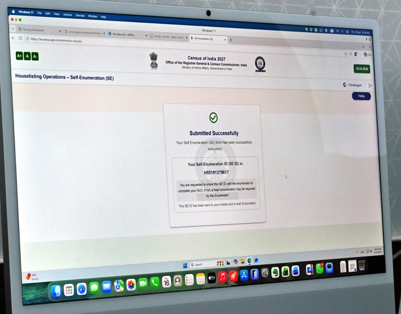 रायपुर : छत्तीसगढ़ में जनगणना 2027 के पहले चरण के तहत मकान सूचीकरण एवं मकानों की गणना के तारतम्य में 16 से 30 अप्रैल 2026 तक स्व-गणना की प्रक्रिया की शुरूआत हुई है। आज यहां मंत्रालय महानदी भवन में मुख्य सचिव विकासशील ने स्व-गणना के तहत स्वयं अपनी जानकारी दर्ज की। इस अवसर पर अपर मुख्य सचिव गृह मनोज कुमार पिंगुआ, छत्तीसगढ़ जनगणना निदेशक कार्तिकेय गोयल सहित जनगणना निदेशालय के अधिकारी भी मौजूद थे।मुख्य सचिव ने प्रदेशवासियों से अपील की है कि इस सुविधा का अधिक से अधिक उपयोग करें और अपनी जानकारी स्वयं भरकर जनगणना में सक्रिय भागीदारी निभाएं। राज्य में 16 अप्रैल से 30 अप्रैल 2026 तक नागरिकों को स्व-गणना के माध्यम से अपनी जानकारी दर्ज करने का अवसर दिया गया है। आज अपर मुख्य सचिव गृह मनोज कुमार पिंगुआ ने भी स्व-जनगणना के तहत अपनी जानकारी पोर्टल पर जानकारी दर्ज की। स्व-गणना के लिएhttps://se.census.gov.in/पोर्टल पर जाकर आसानी से विवरण भरा जा सकता है।मुख्य सचिव ने कहा है कि यह पहल जनगणना प्रक्रिया को आसान, पारदर्शी और अधिक विश्वनीय बनाने की दिशा में महत्वपूर्ण कदम माना जा रहा है, जिससे लोग अपनी सही और पूरी जानकारी स्वयं साझा कर सकेंगे। स्व-गणना अवधि समाप्त होने के बाद, 1 मई से 30 मई तक जनगणना टीम घर-घर जाकर लोगों से जानकारी एकत्रित करेगी। प्रगणक घर-घर आकर जानकारी दर्ज करेंगे। हर मकान की जानकारी दर्ज की जाएगी। घर की स्थिति, सुविधाएं और मूलभूत जानकारी संकलित की जाएगी।जिन्होंने स्व-गणना के तहत जानकारी दर्ज की है वे जनगणना प्रगणकों के घर आने पर उनसे SE ID जरूर साझा करें। यदि कोई स्व-गणना नहीं कर पाते है तो चिंता करने की जरूरत नहीं है। छत्तीसगढ़ राज्य में 1 मई से 30 मई 2026 तक की अवधि में प्रगणक आपके घर आकर जानकारी अवश्य दर्ज करेंगे। सभी नागरिकों से अनुरोध किया गया है कि वे इस अवसर का लाभ उठाकर देश के विकास में अपनी भागीदारी सुनिश्चित करें। इस अवसर पर जनगणना निदेशालय के संयुक्त संचालक प्रदीप साव सहित अन्य अधिकारी शामिल हुए।Spread the lovePost navigationअब हथियार नहीं, हुनर से बदल रही पुनर्वासितों की जिंदगी : इलेक्ट्रीशियन ट्रेड में दिया जा रहा प्रशिक्षण अवैध खनिज उत्खनन पर सख्ती : 2 हाइवा, 1 चैन माउंटेन सहित 6 वाहन जप्त
